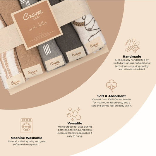Cotton Wash Cloth Set- Safari Animals 5PC