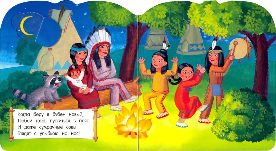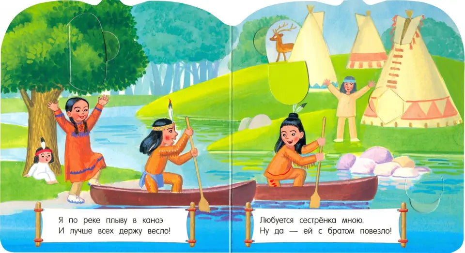 Каждая книжка-домик - это целый мир, в котором дети и взрослые играют, купаются в море или озере, катаются на лыжах, плавают на каноэ или каяке, ездят верхом на верблюдах, лепят снеговиков и стреляют из лука. Индейский, африканский, деревенский, городской, на море и в горах, на Крайнем Севере и в пустыне - все эти домики очень разные, но в каждом живет дружная и весёлая семья.