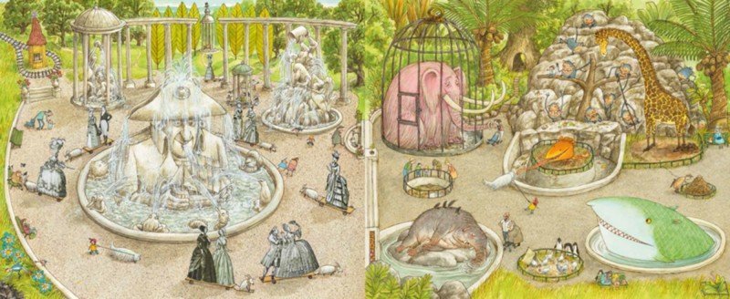 Книга-картинка. Обычная прогулка с собакой может обернуться приключением, полным приятных неожиданностей. Розовый мамонт грустит в клетке для канарейки, а буйвол играет на ударной установке. Гигантский чайник сам разливает чай, а шляпа притворяется островком в море. В фантастических мирах Свена Нурдквиста возможно все!