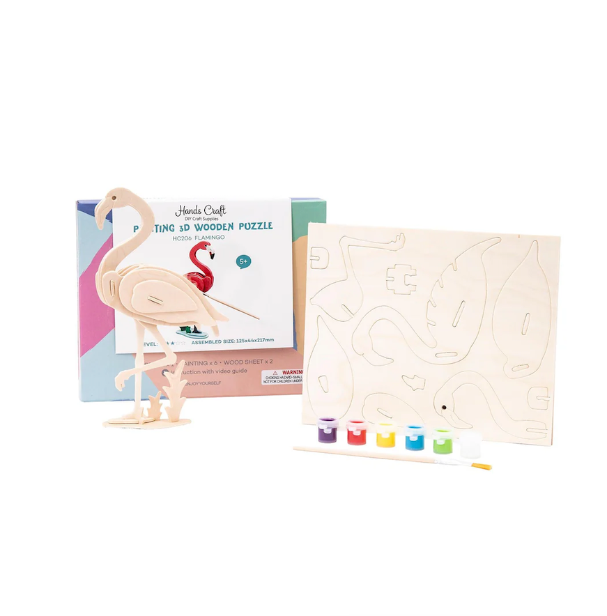 3D Wooden Puzzle with Paint Kit: Flamingo