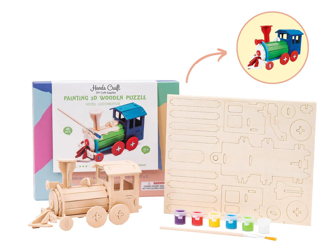 3D Wooden Puzzle with Paint Kit: Locomotive