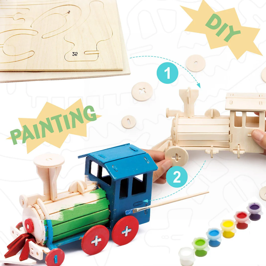 This exciting kit lets you build and personalize your very own vintage-style train, combining the thrill of puzzle assembly with the fun of painting.