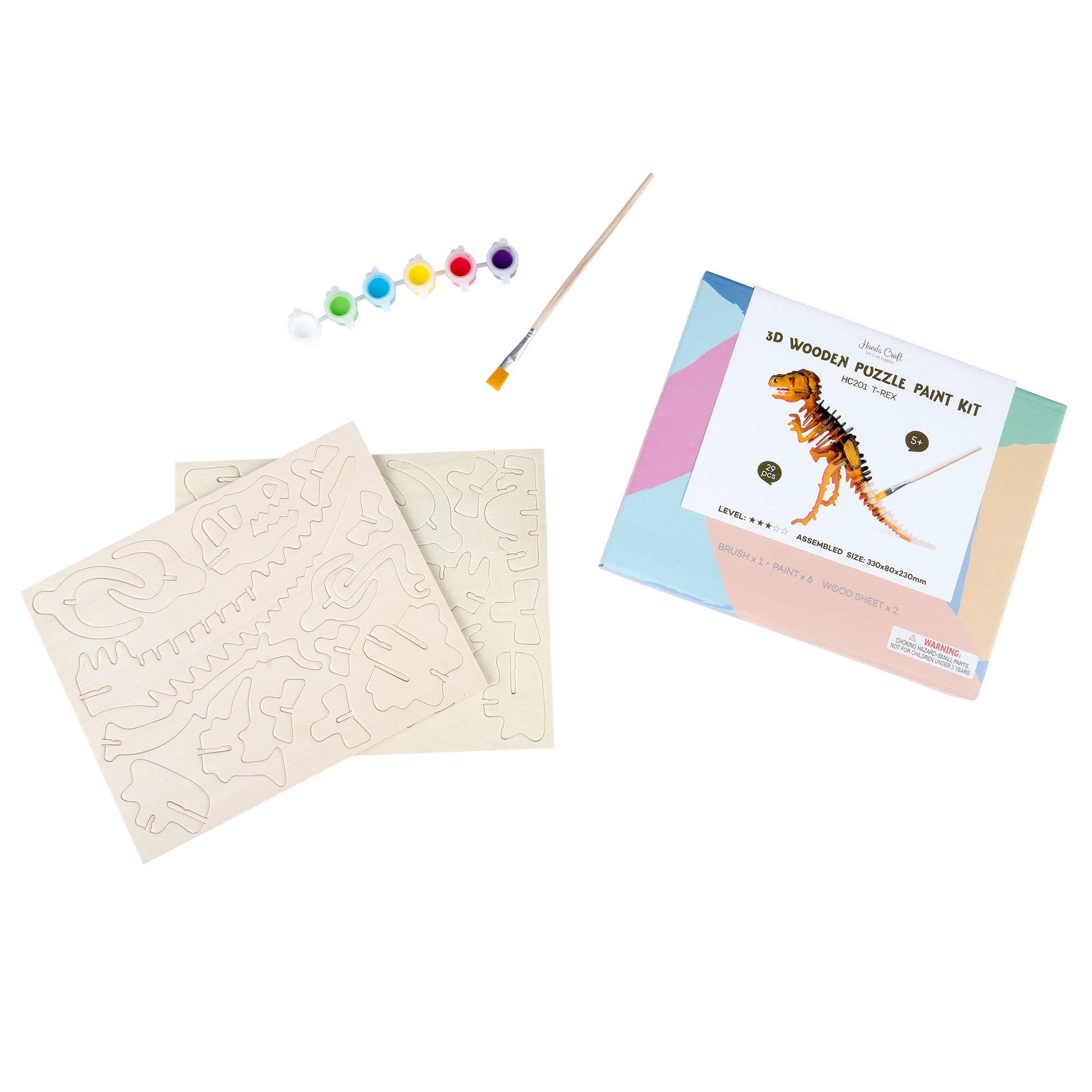 3D Wooden Puzzle with Paint Kit: T-Rex