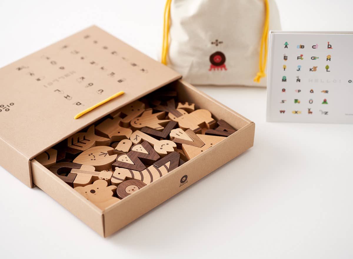 Dive into a world of creativity and learning with these charming Alphabet Play Blocks! Designed by the talented Korean designers Oioiooi, this set includes 60 solid wooden blocks made from eco-friendly beech and walnut wood. Each block features a letter of the alphabet and is paired with a matching shape or image to spark storytelling and imaginative play.