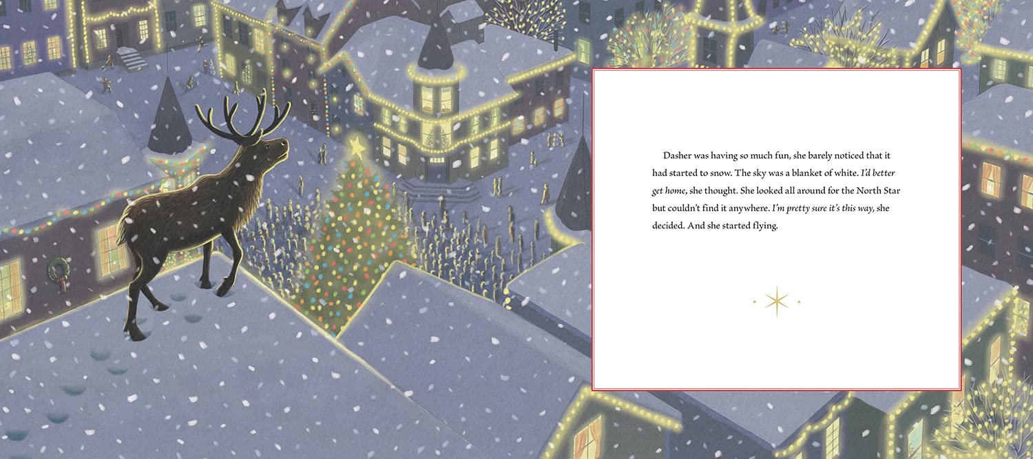 With only one sleep left before Christmas Eve, Dasher can’t contain her excitement for her favorite holiday. With the sound of Christmas carols on the breeze and twinkling lights radiating from a nearby city, she sneaks off to visit the festivities. But as night deepens and snow starts to fall, Dasher realizes she can no longer spot the North Star in the sky to lead her home. Will the kindness of a child, an unexpected gift, and a dose of Christmas spirit get her back in time to help guide Santa’s sleigh? The New York Times best-selling creator of Dasher has crafted another delightful journey featuring everyone’s favorite reindeer doe, in a story full of giving, joy, and holiday magic.