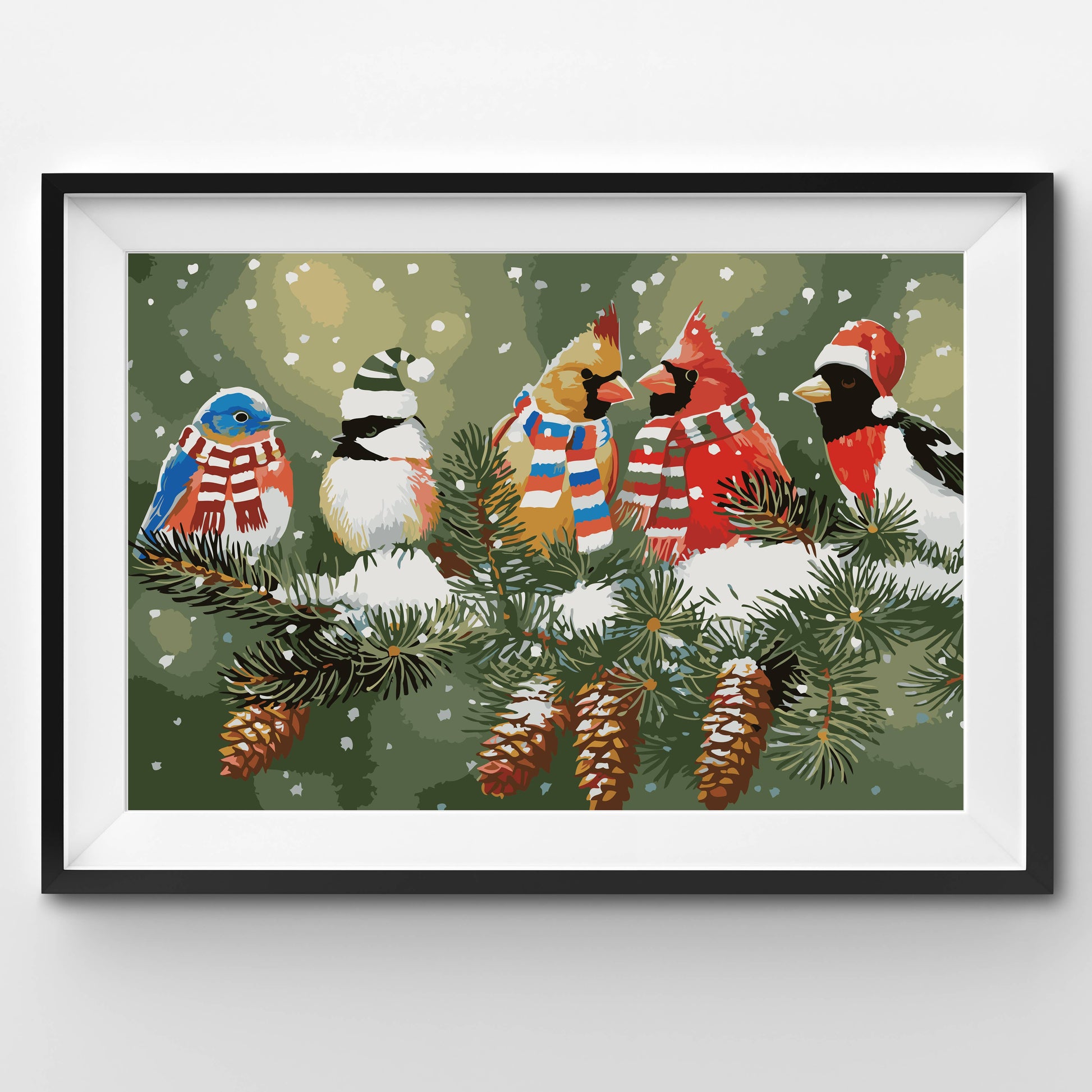Get ready to spread some holiday cheer with this Festive and Christmassy Birds on a Snowy Branch painting! Part of our extra-large paint by numbers collection, this piece is the perfect way to deck the halls and create a festive vibe in your home this Christmas. Imagine telling your guests that you painted this cheerful winter scene yourself—talk about a holiday bragging right!