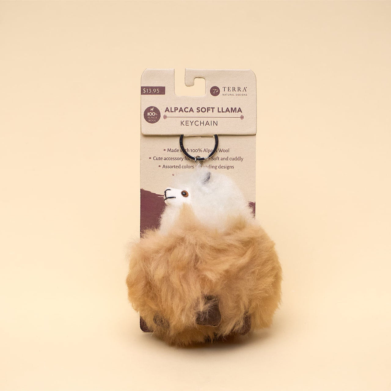 Beautiful and playful Alpaca Soft Llama, made with 100% alpaca wool.Natural toned. Can be used as an accent piece for your backpack or purse.