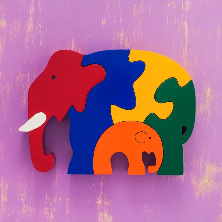 This Momma and Baby elephant puzzle was handcrafted from sustainable Sri Lankan plantation rubber wood and was painted with non-toxic coatings that are compliant with SGS USA toy safety standards.