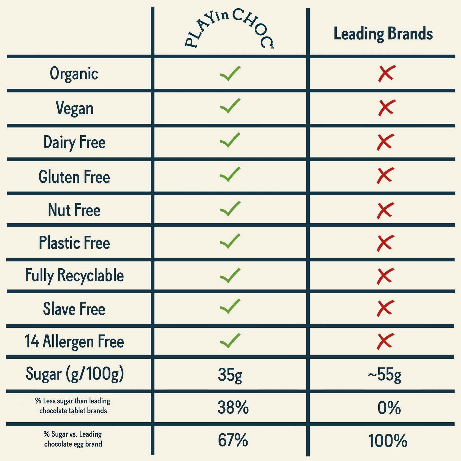 100% organic Dairy, Nut, Gluten, Soy & Plastic FREE