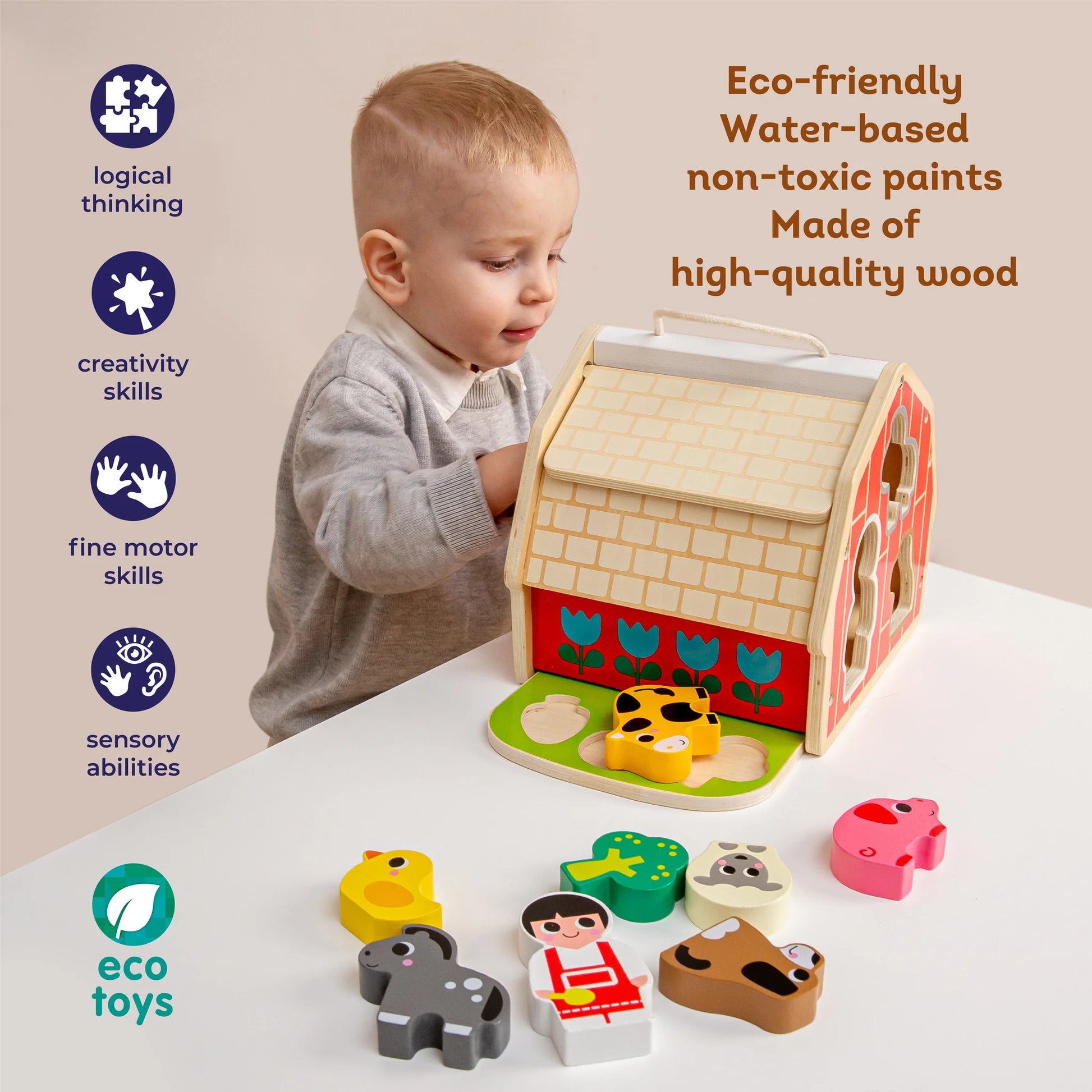 The On the Farm Sorting House introduces toddlers to farm animals, colors, and shapes, promoting early learning concepts. This interactive play encourages recognition of patterns, enhances memory skills, and helps develop a foundational understanding of the world around them.