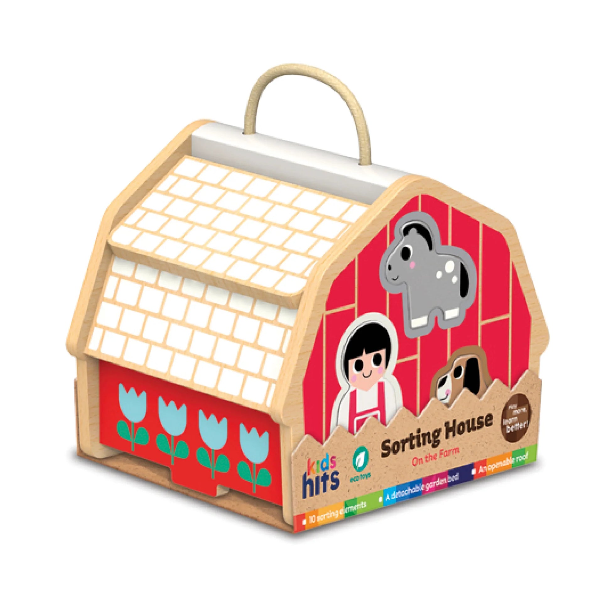 Introduce little ones to the wonders of the farm with the Sorting House: On the Farm! This colorful and interactive wooden toy features 10 uniquely shaped pieces, including farm animals, a farmer, and other farm-themed shapes that fit into the sorting house and detachable garden bed. As children sort and match the pieces, they strengthen their fine motor skills, problem-solving abilities, and hand-eye coordination. Beyond sorting, the toy encourages imaginative play, with the farm animals and farmer figure inspiring creative storytelling and role-playing adventures.