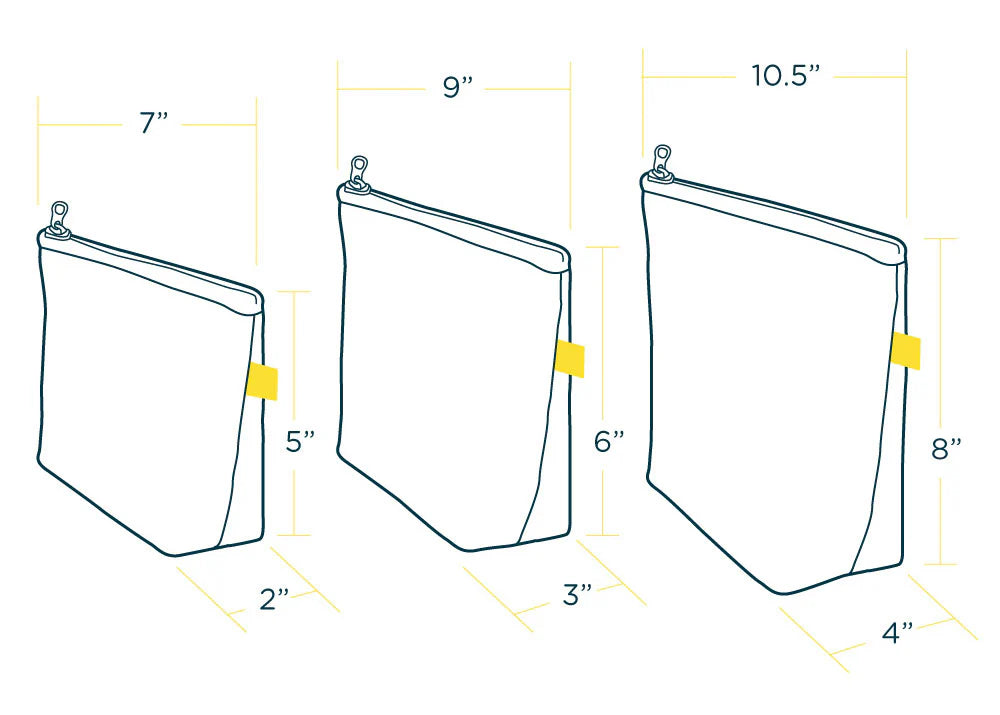 Set of versatile, super-cute pouches in three different sizes—perfect for all your daily essentials. From keys and cords to cosmetics or extra socks, these zip pouches keep it all together.