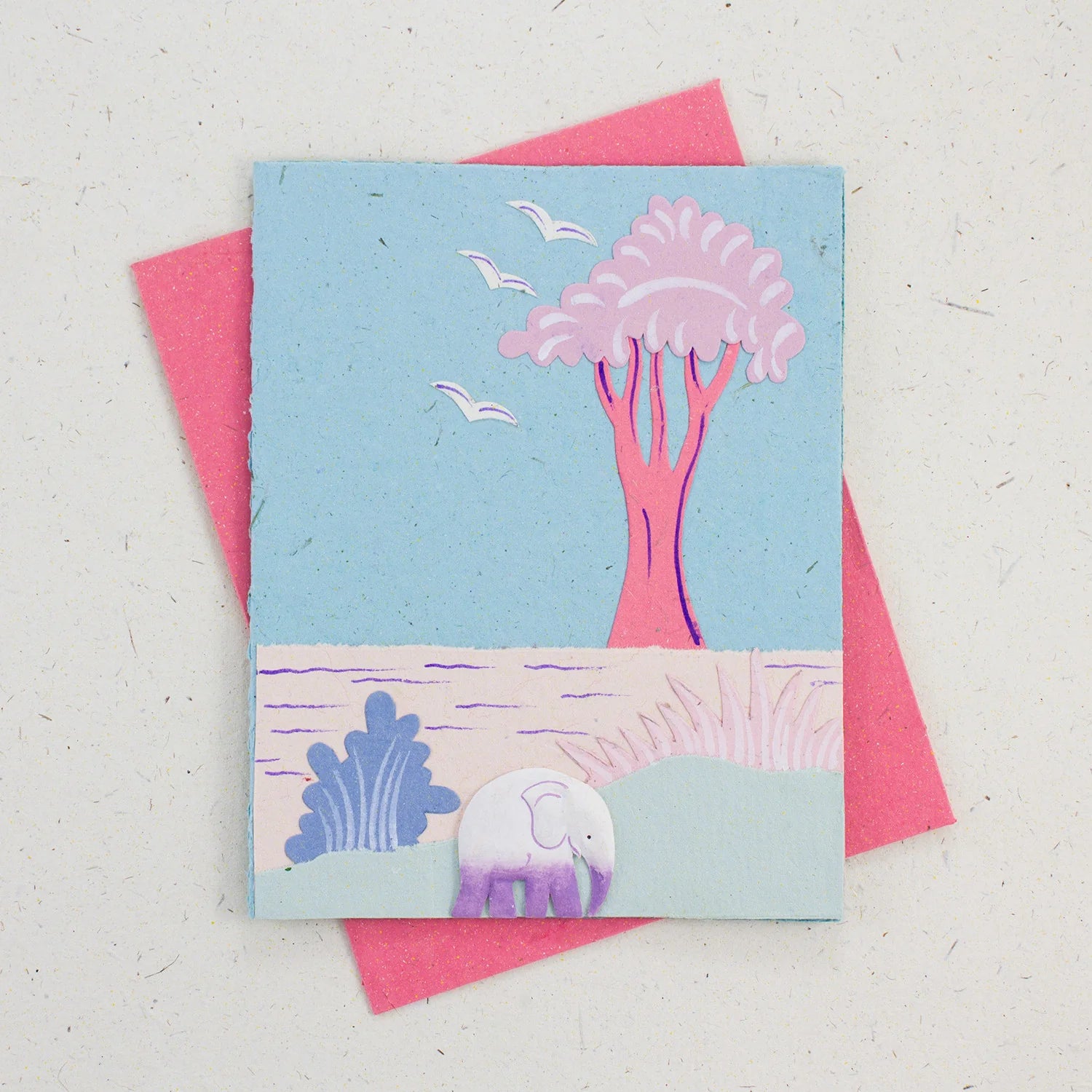 Each of these greeting cards is a testament to eco-friendly innovation, handmade using a blend of 30% elephant dung fiber and 70% recycled paper. No trees are harmed, and no toxic chemicals are used in the paper-making process. These cards are acid-free, biodegradable, and crafted using all-natural binding agents and water-soluble salt dyes, ensuring that every card is as sustainable as it is beautiful.