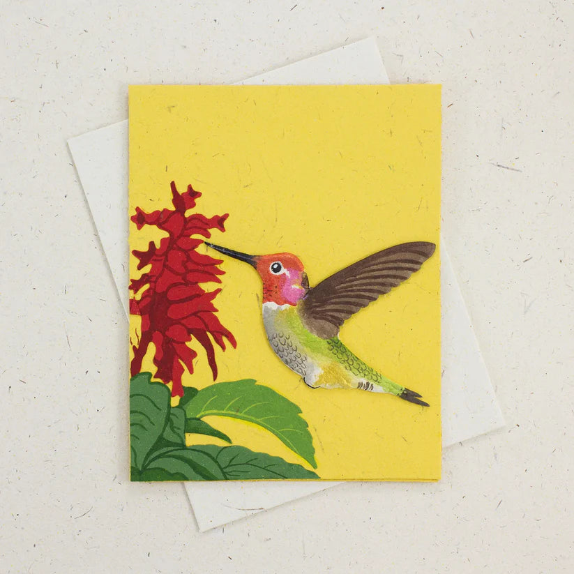 Delight your recipient with the lively spirit of the Hummingbird Embossed Greeting Card. The intricate embossing of a hummingbird on eco-friendly elephant dung paper adds a playful yet elegant touch to any occasion. Its vibrant energy is perfect for sending thanks, celebrating achievements, or simply spreading joy.