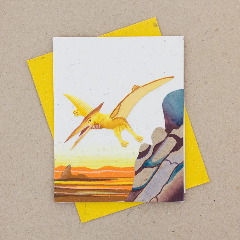 Soar through time with the Pterodactyl White Greeting Card, capturing the grandeur of ancient skies. Crafted from elephant dung paper, this card evokes a sense of wonder, ideal for sending adventurous messages or celebrating milestones with a touch of prehistoric flair.