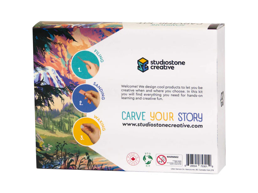 Experience the joy of crafting a soapstone cat sculpture with Studiostone Creative! This engaging kit is designed for adults and children aged 8 and up, featuring eco-friendly materials and packaging made in beautiful British Columbia, Canada.