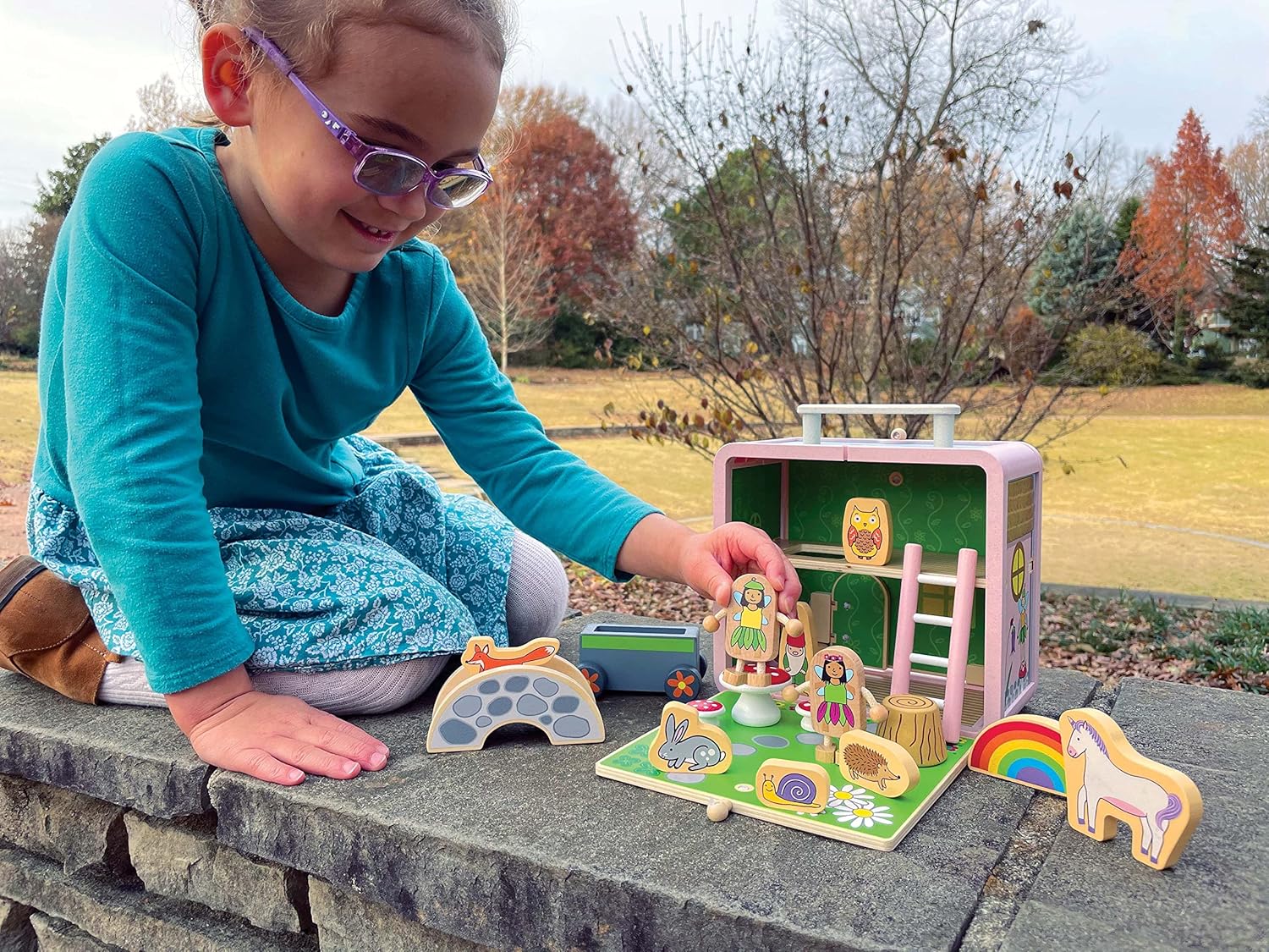 Introducing the enchanting Suitcase Series: Fairy House, a delightful playset designed to spark your child's imagination. This portable playset opens up to reveal a magical world filled with whimsical characters and scenes. Crafted from eco-friendly FSC-Certified bamboo, the Suitcase Series: Fairy House combines sustainability with fun, making it a perfect choice for eco-conscious families.