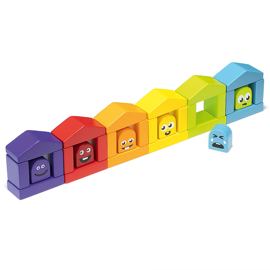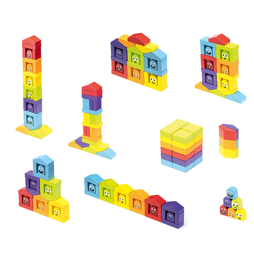 DEVELOPS VISUAL AND SPATIAL THINKING: This wooden construction toy boosts spatial awareness, creativity, & imagination. Ideal for story-based play & educational games that teach emotional recognition while encouraging hands-on learning.